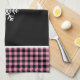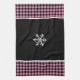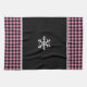 This kitchen towel is shown in a cute black and pink buffalo plaid snowflake print design.