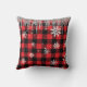 This pillow is in a buffalo plaid with snowflakes across it on both sides.