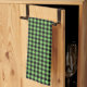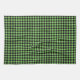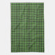 This kitchen towel is shown in a cute black and lime green buffalo plaid print design.