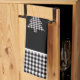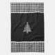 This kitchen towel is shown in a cute black and white buffalo plaid Christmas tree print design.