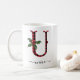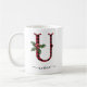 Black and Red Buffalo Plaid U Monogram Xmas Coffee Mug featuring a cute A initial letter with a buffalo plaid pattern and mistletoe watercolor element. The custom name template under the U monogram is in a swirly handwritten calligraphy font with flourishes. Give a thoughtful personalised Christmas mug as a winter holiday gift or stocking stuffer. For a different monogram letter check out the "Other products from this collection" section below.