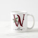 Black and Red Buffalo Plaid W Monogram Xmas Coffee Mug featuring a cute A initial letter with a buffalo plaid pattern and mistletoe watercolor element. The custom name template under the W monogram is in a swirly handwritten calligraphy font with flourishes. Give a thoughtful personalised Christmas mug as a winter holiday gift or stocking stuffer. For a different monogram letter check out the "Other products from this collection" section below.