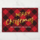 A modern Christmas design, features a buffalo red plaid pattern with the text spelled in a beautiful faux foil gold script font