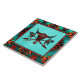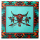 Brighten Your Home with this Unique "One of a Kind" Buffalo Skull And Arrows Ceramic Tile! It Features a Native American Buffalo Skull And Arrows with Feathers on a Turquoise Background...Surrounded by a Southwest Border in Turquoise, Orange & Black!