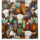 Buffalo skull Native American Style Emblem, decorated with Colorful Feathers. Original Vector Illustration Copyright BluedarkArt TheChameleonArt.