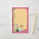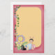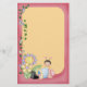 a soft yellow background surrounded by a pink frame, decorated with vines, butterflies and flowers and a cute folkart bug sitting on the bottom. Customise this whimsical stationery with a name and you have the perfect personalised gift for a little girl!