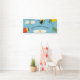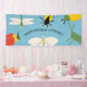 Add your own message to create a custom banner for birthday parties and other special events. This banner has illustrations of beetles, a moth, a grasshopper, a cicada and a dragonfly in yellow, red, black, white and green against a light blue background.