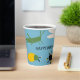 Add your own text to create personalised party supplies for your bug or insect themed birthday party or other special events. These paper cups feature retro style illustrations of bugs in green, white, yellow, red and black against a light blue background. Graphics include beetles, a dragonfly, a cicada, a moth and a grasshopper. Your custom message appears in the centre.
