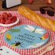 Add your own text to create personalised party supplies for your bug or insect themed birthday party or other special events. These paper plates feature retro style illustrations of bugs in green, white, yellow, red and black against a light blue background. Graphics include beetles, a dragonfly, a cicada, a moth and a grasshopper. Your custom message appears in the centre.