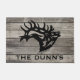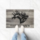 Personalise this Unique "One of a Kind" Bull Elk Door Mat! It Features a Majestic Bugling Bull Elk Black Silhouette...on a Stressed Wood Background!