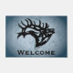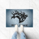Personalise this Unique "One of a Kind" Bull Elk Door Mat! It Features a Majestic Bugling Bull Elk Black Silhouette...on a Slate Blue Background!