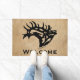Personalise this Unique "One of a Kind" Bull Elk Door Mat! It Features a Majestic Bugling Bull Elk Black Silhouette...on a Tan Leather Background!