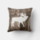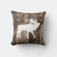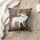 Bugling Elk on Rustic Wood Cabin Decor Throw Pillows and Decorative Accent Pillows perfect for your hunting cabin. The background of the pillow gives the appearance of old barn wood. Great gift for hunters and those who love wildlife and big game. The wood is a darker wood with a white elk silhouette.