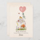 Cottagecore woodland themed valentine featuring illustration of mushrooms, wildflowers and ladybugs with heart shaped balloon. Text says "Bugs & Kisses."