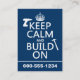 This reads Keep Calm and Build On, in the style of the classic keep calm poster. There are silhouettes of a hammer and power drill around the words. It's a fun eye catching design, perfect gifts for all builders and contractors, or anyone who likes a bit of DIY.