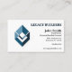 A simple diagram of a room in blue, with dark blue text on a white background creates a sharp and professional business card for a builder or contractor. Could be used for a real estate agent, developer, or even home insurance.
