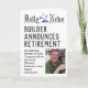 Retirement Card in the form of a Newspaper. Builder Retirement.