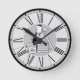 Builder clock. Builder is standing with building materials around him. A fun clock for a builder or construction worker. Stylish gift builder's clock. Suitable for a Builder's office, or the walls of a construction company or Builders Merchants. Bold roman numerals and a black, white and grey watch face. Construction company clock.