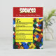 A fun and colourful birthday party invitation with colourful building blocks and customisation.