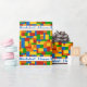 Building Blocks Happy Birthday Wrapping Paper in colours of blue, red, yellow, orange and green. Customise the text however you want.