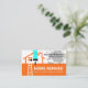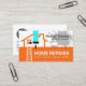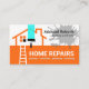 Cover features a home building frame that is in the midst of repairs. At the base is a white ladder which blends in with the upper layer ; Here lies the business name and a list of services that you might offer. You can change the caption remarks to suit your own service needs. Just above this, inside a grey paint splatter is your prestigious name and job title.