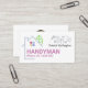 An all white cover features a creative building design. Here lies the oversize business name and its contact details. Towards the upper right corner lies your prestigious name alongside a handyman tools logo you can use.
