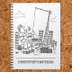 Gift for a crane operator or construction worker. On a building site a builder is sending tea and sandwiches up to the overhead crane operator. Funny construction site cartoon illustration.