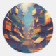 These tags feature a surreal art design with vibrant colours, showcasing stacked buildings and houses in a whimsical and imaginative style. Perfect for capturing the charm of dreamlike architecture