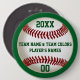 BULK or buy One. Colossal Personalised Baseball Pins Buttons in sizes 1.5 inch to Colossal 6 inch Round. Type in the Year, Your Team and each Player's Name and Jersey Number, Your Text or Delete. Call Linda for HELP: 239-949-9090. See the Instructions below to Change the green text and background to Your Team Colours. Linda: 239-949-9090.