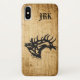 Personalise Your Cell Phone with this Unique "One of a Kind" Bull Elk iPhone Case. It Features a Bugling Bull Elk Black Silhouette on Stressed Wood Background