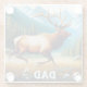 A majestic bull elk trots across a meadow with mountains and pine trees in the background, DAD in the foreground. Perfect for Dad Birthday or Father's Day