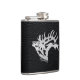 This Unique "One of a Kind" Bull Elk Flask! It Features a Silver Majestic Bull Elk Silhouette on a Black Leather Background!