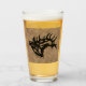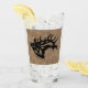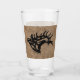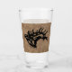 Brighten Up Your Bar with this Unique "One of a Kind" Bull Elk Beer Glass! It Features a Bugling Bull Elk Black Silhouette on a Brown Leather Background.