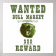 Wanted poster for the bull investor. Bull market wanted. Reward for rising stock prices. Upwards Dow Jones, let the stock market boom!