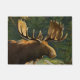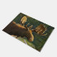 This outdoors - nature theme doormat depicts a bull moose with a trophy class rack of antlers in a woodland setting. The moose is North America's largest deer.