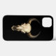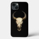 This unique design features a symmetrical bull skull on a pure black background. Rough textures and natural colours gives the graphic a realistic look. This aggressive skull design is a stunning Western pattern.