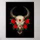 Bull Sugar Skull with Red Roses on Black Poster