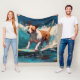 Bull Terrier Beach Surfing Painting Fleece Blanket
