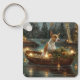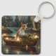 Set sail into the magic of the holiday season with this beautifully detailed illustration, showcasing a proud dog sitting in a festively decorated boat, gliding across a serene Christmas lake. The twinkling lights from nearby pine trees reflect off the water, casting a warm, festive glow that enhances the cosy ambiance. Ornaments dangle from the boat's sides, while glowing lanterns light the way, creating a scene that captures the true essence of Christmas warmth and joy. This nostalgic artwork brings a touch of holiday magic to any space, perfect for those who cherish the spirit of the season.