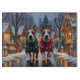 This festive design captures the joyful spirit of the holiday season, featuring an adorable dogs.Nestled in a winter wonderland, complete with a decorated Christmas tree, and beautifully wrapped presents. Snowflakes gently fall, adding a magical touch to the scene, while the vibrant colours of the holiday decorations create a warm and cheerful atmosphere.