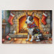 Bull Terrier Fireplace with Christmas Lights Jigsaw Puzzle