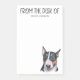 These post-its are awesome! They feature an adorable watercolor Bull Terrier and have "From The Desk Of" and a name. They'd be a super cute gift for your Bull Terrier loving friends or family.