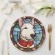 Elevate your holiday decor with this exquisite stained glass Christmas ornament. Crafted with meticulous attention to detail, this ornamental masterpiece captures the essence of canine charm. Its vibrant colours and intricate design evoke a sense of warmth and joy, adding a touch of elegance to your tree. Handcrafted with love, this timeless piece is a perfect gift for dog lovers and enthusiasts alike. A must-have for Christmas enthusiasts, stained glass ornaments, pet-themed decorations.