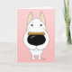 Valentine reads "I Noz How To Treat You Right, Be My Valentine". Featuring an adorable Bull Terrier with a treat balanced on his nose.
