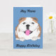 Customise front and inside birthday card, cute bull dog. Matching mugs and other products available.in various colours