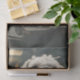 Dreadlock Duke is a charming scene of a bulldog seated in a classic barber chair, facing a mirror with long white dreadlocks cascading over the chair. The setting is reminiscent of an old-fashioned barbershop, complete with framed pictures on the wall, a sink with a mirror, and tiled flooring. This anthropomorphic depiction of the bulldog, placed in a typically human grooming scenario, adds a humourous touch to the image, as the dog seems to be admiring its own reflection and unique hairstyle. It’s a playful and creative visual that blends the worlds of pets and people in an endearing way.