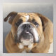 Brown English Bulldog face with torn ear. Rescued bulldog has a cute, funny, begging expression to touch the heart of any dog breed lover. >> Close-up portrait photography has a full breed adult female, wrinkly canine to adore doggy fans. >> Customisable artwork. Add YOUR OWN personal name or custom message. Click "Personalise this template" and create your own additional text, customise the background shape, graphic, etc. to make your final design.