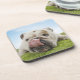Bulldog Lying on Grass Licking Lips Coaster