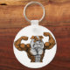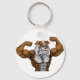 Cartoon tough mean strong bulldog sports mascot showing his bicept arm muscles
