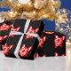 French Bulldog dog silhouette in red white and black, sitting and observing directly you